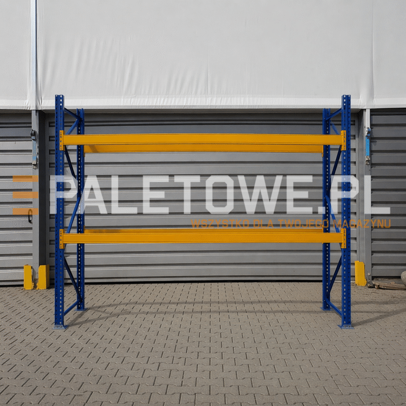Regały paletowe to najczęściej spotykany typ regałów magazynowych w centrach logistycznych i magazynach przemysłowych. Ich konstrukcja jest zaprojektowana do bezpiecznego składowania ciężkich ładunków umieszczonych na paletach. Używane regały stanowią znaczną część naszej oferty. Są to zazwyczaj regały rzędowe, zapewniające swobodny dostęp do każdej palety za pomocą wózków widłowych. Kluczowe elementy tych regałów to pionowe ramy oraz poziome belki (trawersy), tworzące poziomy składowania, często określane potocznie jako "półki" dla palet. Wybierając używane regały z Paletowe.pl, otrzymują Państwo konstrukcje sprawdzone pod kątem wytrzymałości i zgodności z normami. Posiadamy regały różnych producentów i o różnych parametrach nośności, co pozwala dopasować je do specyfiki składowanych towarów i posiadanego sprzętu transportowego. Nasz zespół pomaga dobrać odpowiednie regały do Państwa potrzeb.